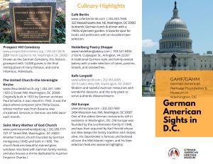 You can explore the capital city’s German history by visiting some of our German and Austrian American sights and restaurants. Download our brochure, be inspired, and follow in the footsteps of German immigrants or explore Austrian and German cuisine at one of our listed eateries! Viel Spaß und guten Appetit!