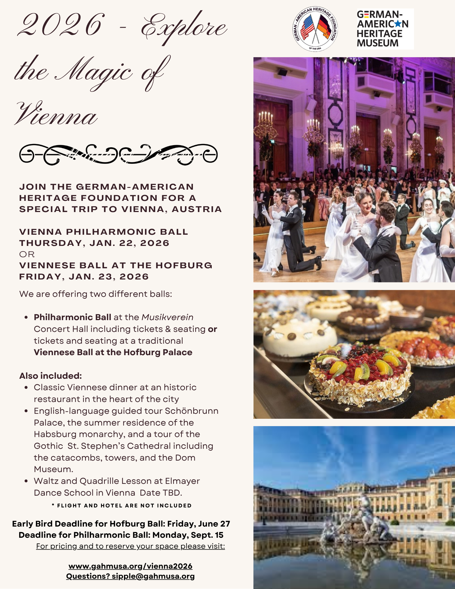 Join the German-American Heritage Foundation for a Special Trip to Vienna, Austria in January of 2026